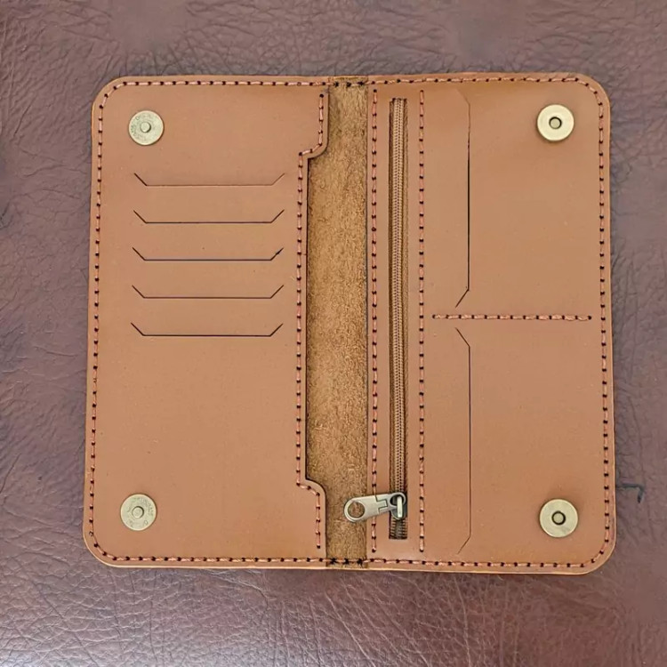 این کیف دارای جا کارتی و جای زیپ و دارای رنگ لبه می باشد با چرم طبیعی گاوی ساخته شده و کاملا دست دوز میباشد