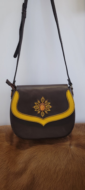 این محصول از چرم طبیعی ساخته شده و کاملا دست دوز می باشد . ترکیب با هنر میکرو مکرومه هست . این کارچون هنر دست هست با عشق دوخته شده. روی کار با سنگ عقیق تزئین شده. و دورگیری سنگ عقیق با هنر زیبای میکرومکرومه انجام شده است.