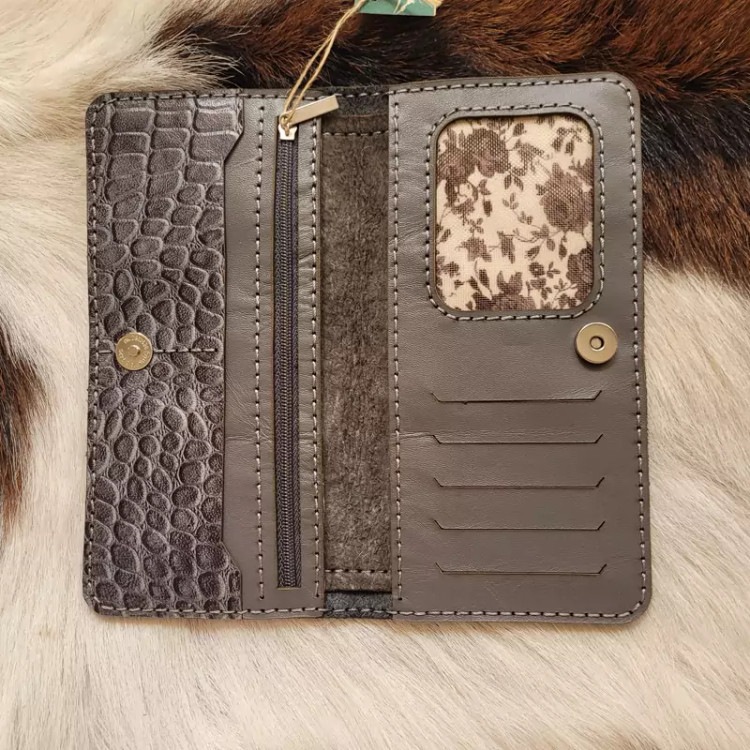 این کیف با چرم طبیعی دوخته شده.. برش با دستگاه لیزر و دوخت با دست انجام شده دارای جای زیپ و جای کارت و جای عکس می باشد.
