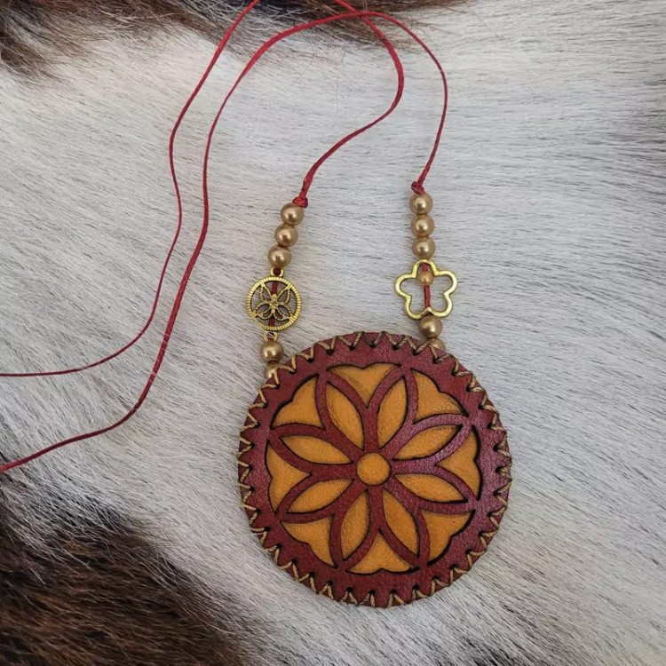 گردن آویز چرم طبیعی قطر کار 6.5 سانتیمتر بعنوان زیور آلات هم میشه استفاده کرد روو مانتویی بسیار زیبا به همراه مهره های تزئینی در صورت دلخواه میتوان بند را ساده کنیم جنس نخ بند از نخ موم زده محکم تشکیل شده