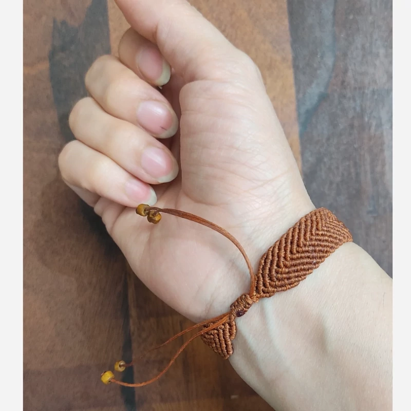 دستبند بافت میکرومیکرومه با نخ موم زده و سنگ فیروزه صنعتی